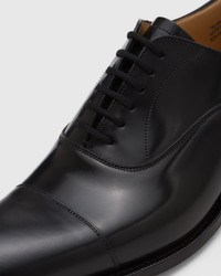 The Dubai means business. Suitably named, this professional Oxford boasts sophisticated contours and a jet-setter attitude. Also appropriate for special events requiring a more polished look, the Dubai has been waxed to a high shine using our polished binder treatment. Crafted on Church’s 136 last, its narrow, pointed shape has contemporary appeal while remaining understated enough for more traditional settings. Subtle to the very end, it’s finished with blind eyelets and double stitching along the toe cap and the upper. Take note, it’s not every day you meet a business shoe you can wear to a gala event. ------Made in Northampton, England. • Product code: EEB017_9XV_F0AAB_F_000000 • Classic lace-up oxford with cap toe stitching--- • Calf leather with polished binder finish--- • Cotton laces--- • Blind eyelets--- • Last 136--- • Leather sole--- • Internal lining for longevity of wear--- • Handwritten shoe info to lining--- • Goodyear construction--- • Church’s crest to sock and sole--- • We advise to purchase a half size smaller than your usual size • Imported product