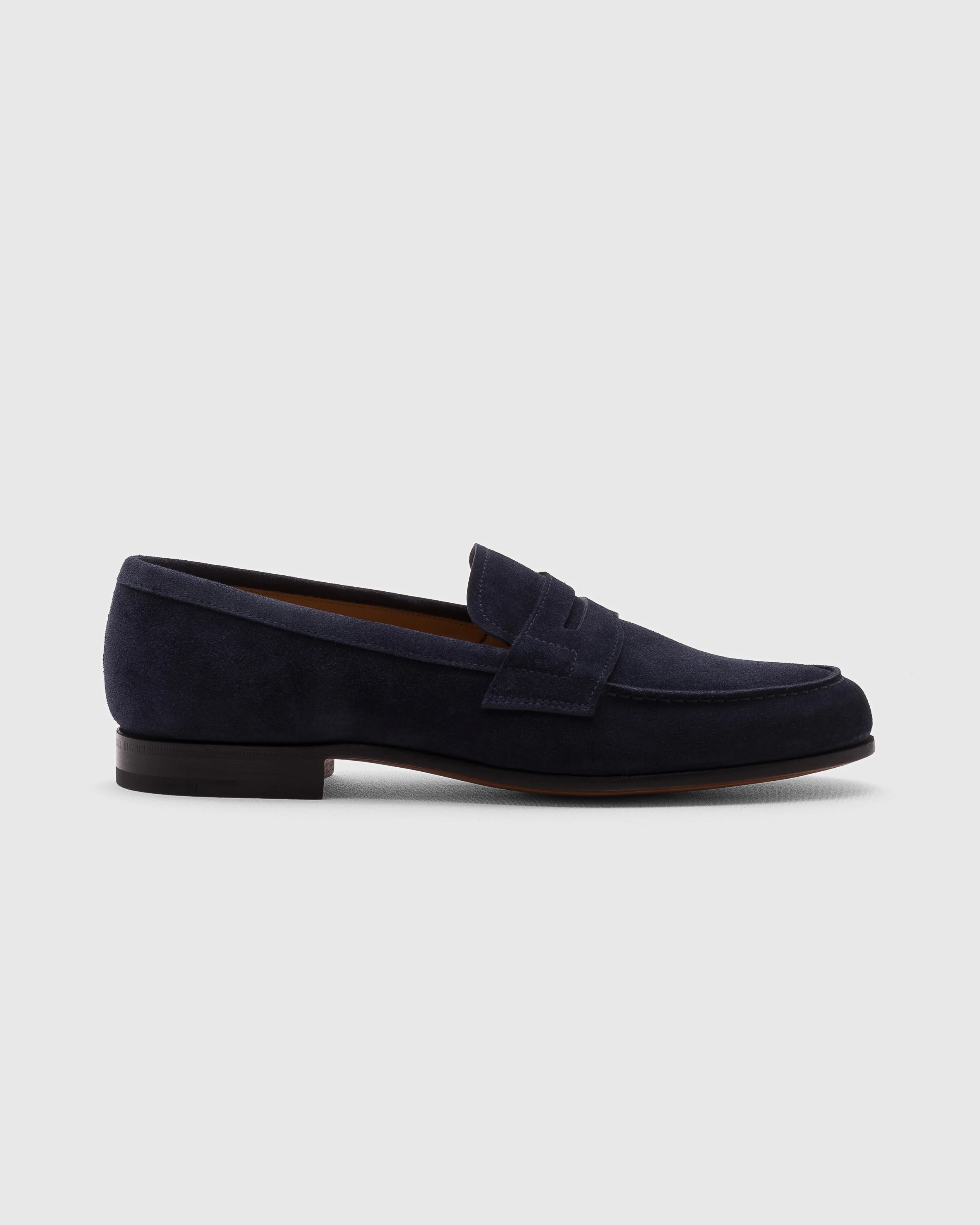 The Heswall 2 balances the ease of a slip-on with the sophistication of a business shoe. A soft suede upper adds to its relaxed mood, while a sleek silhouette secures its smart-casual character. Expert craftsmanship ensures that this traditional penny loafer remains comfortable, thanks to a folded topline that contributes to a smooth stride. A full leather lining means this shoe is cosy whether worn with or without socks. • Product code: EDB137_9CA_F0ABM_F_000000 • Upper in premium suede with hand painted apron edge--- • Folded neckline for maximum comfort--- • Extra light leather sole hand trimmed and hand painted--- • Fully lined in extra soft leather--- • Padded insole for extra comfort--- • Blake construction for extra flexibility with inchannel stitching • Imported product