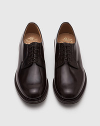 The Shannon is an exquisite exemplar of artisanal expertise. Popular since its inception in 1974, this clean and classic whole cut derby is crafted from a single piece of leather which requires the highest quality hide, completely free of marks and flaws. Smooth and sleek, the Shannon’s unblemished upper is punctuated with artisanal subtleties - hand-stitches are applied by specialised craftsmen to form a half moon motifs to the eyestay while a chunky, storm-welted double sole, rounded toe and glossy polished binder finish complete an aesthetic that is both elegant and practical.------Made in Northampton, England. • Product code: EEB001_9XV_F0AMA_F_000000 • Plain lace-up derby blucher with hand stitching to eyestay--- • Whole cut leather with polished binder finish--- • Half moon stitching detail to eyestay --- • Nappa bellow tongue --- • Leather laces--- • Blind eyelets--- • Last 103--- • Leather double-sole--- • Internal lining for longevity of wear--- • Handwritten shoe info to lining--- • Goodyear construction with storm welt--- • Church’s crest to sock and sole • Imported product