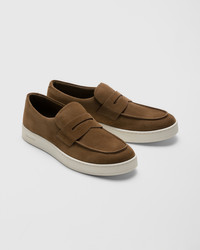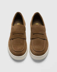 Crafted from soft, high-quality suede, the Nailsea style brings new life to the iconic penny loafer silhouette through unexpected details, such as hidden elastic details for an easy fit, a comfortable padded insole and a sporty, flexible rubber sole. This hybrid and contemporary design reflects the brand's distinctive artisanal mastery, achieving casual elegance by juxtaposing traditional elements with sneaker-inspired features to guarantee superior comfort. • Product code: EDG012_9VJ_F0ADV_F_000000 • Casual loafer with apron-toe seam • Upper in soft, top quality suede leather • Elastic detail under the tongue • Removable padded insole for superior comfort • Lightweight and flexible rubber sole hand-sewn to the upper • Church's & Co. logo sole • Padded leather lining for exceptional comfort and breathability • Imported product