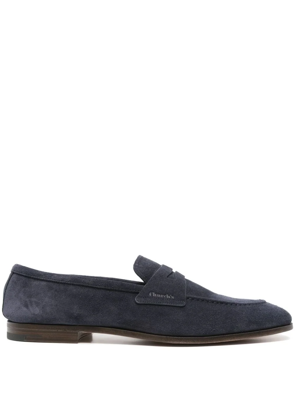 suede loafers Highlights - Navy blue - Penny slot - Branded leather insole - Leather sole - Almond toe Composition Lining: Leather 100% Sole: Leather 100% Outer: Calf Suede 100%