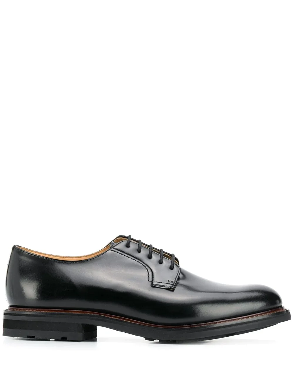 Woodbridge derby shoes Thriving in the early Victorian boom, Church’s an English brand over a hundred years old. Rupturing quotidian aesthetics, the craftsmanship brand provoked the market with unique and bold models. Crafted from smooth black leather, these Woodbridge derby shoes from Church's feature an almond toe, a lace-up front fastening, a branded insole and a flat heel. Composition Outer: Leather 100% Lining: Leather 100% Sole: Rubber 100% SIZE & FIT Measurement HEEL 1.57 in(4 cm) Sole height 0.59 in(1.5 cm)