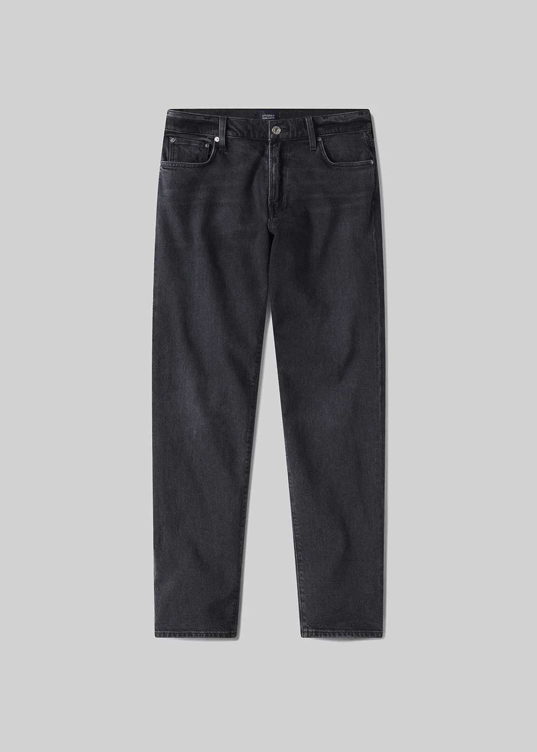 The Adler is our slim straight fit—cut with a slightly higher rise, room through the thigh, and a subtle taper from knee to ankle. Crafted from heavyweight comfort stretch denim with a soft hand, this pair is finished in a marbled black wash with subtle fading and whiskering for a broken-in, lived-with look. This fit is true to size. Looks Like: Medium to dark black denim Feels Like: Comfort stretch, signature archive denim with a super soft hand for all day wearability DETAILS Closure: Zip Fly Rise: 10 1/2” Inseam: 32 1/2” Leg Opening: 14 1/4” Model is 6'1" and is wearing a Size 32 Fabric Content: 98% Cotton 2% Elastane Care Instructions: Machine wash cold inside out with like colors. Do not bleach. Tumble dry low. Made in USA with imported materials 6190-1693_GROTT