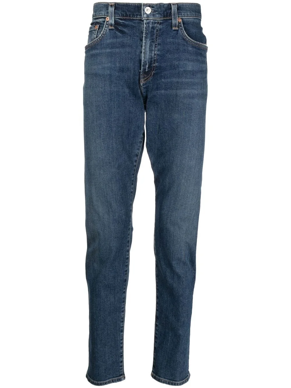 Adler slim-fit jeans Highlights - Navy blue - Stretch-cotton - Dark wash - Logo patch to the rear - Belt loops - Front button and zip fastening - Classic five pockets - Slim cut Made In United States Composition Cotton 98%, Polyurethane 2% SIZE & FIT Model measurements Height 6 ft 2 in(1.87 m) Bust/Chest 34.25 in(87 cm) Hips 36.22 in(92 cm) Waist 29.52 in(75 cm) FittingInformation This piece fits true to size. We recommend you get your regular size Cut for a slim fit Made with a mid-weight stretch fabric Washing instructions Machine Wash