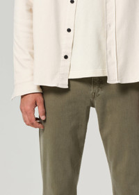 Our slim, a perfectly crafted slim leg from the hip to the ankle. This fit is true to size. Looks Like: Clean medium olive green Feels Like: Heavyweight yet breathable soft weft stretch twill From our HUMANITY Collection DETAILS Closure: Zip Fly Rise: 10 1/2” Inseam: 32” Leg Opening: 14” Model is 6'1" and is wearing a Size 32 Fabric Content: 43% Viscose 33% Cotton 17% Lyocell 5% Polyester 2% Elastane Care Instructions: Machine wash cold inside out with like colors. Do not bleach. Tumble dry low. Made in USA with imported materials 6190-1364_HRGRN