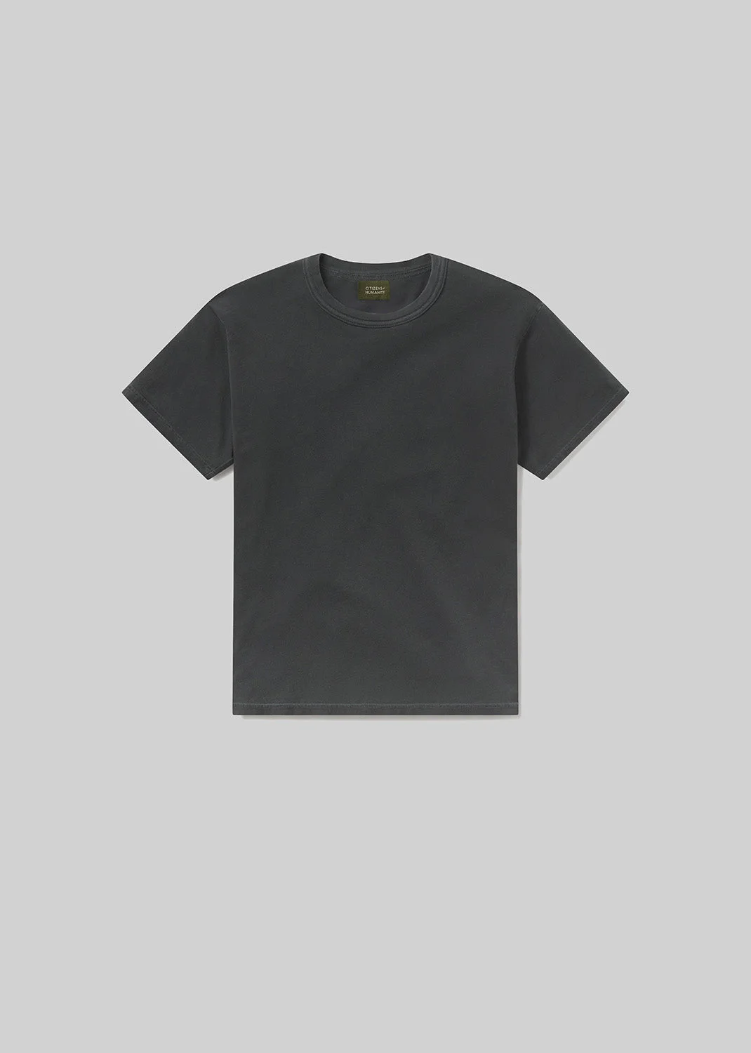 The Box Tee is a wardrobe staple, cut in a relaxed silhouette from lightweight brushed jersey. Crafted from 100% organic cotton, it’s soft to the touch and finished in a deep charcoal hue for easy, everyday wear. This fit is true to size. Looks Like: Dark charcoal grey short sleeve tee Feels Like: Lightweight brushed jersey cotton, soft to the touch DETAILS Body Length: 26 3/4" Sleeve Length: 8 1/2" Model is 6'1" and wearing a size Medium Fabric Content: 100% Organic Cotton Care Instructions: Machine wash cold. Made in USA with imported materials MT130-3050_CHACE