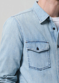 The ‘Utility Shirt’ is a timeless staple, crafted from lightweight rigid cotton denim with a soft, lived-in feel. Designed with a classic button front and utilitarian details, the light indigo wash features subtle fading and marbling for vintage appeal. Easy to style layered or solo year-round. This fit is true to size. Looks Like: Light to medium indigo denim long sleeve button up collared shirt Feels Like: Rigid, non-stretch cotton denim with a soft hand for all day wearability From our HUMANITY Collection DETAILS Body Length: 29" Sleeve Length: 26 1/4" Model is 6'1" and wearing a size Medium Fabric Content: 100% Cotton Care Instructions: Machine wash cold. Made in Turkey with imported materials M9026-1527_TMPO