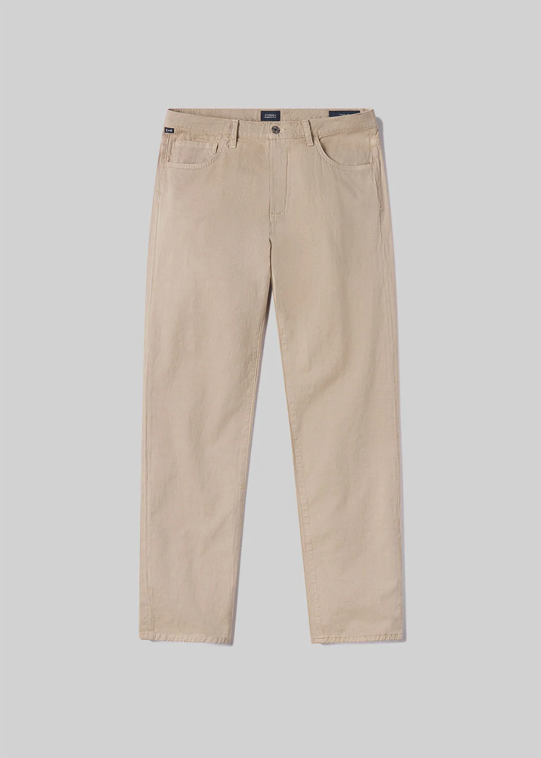 Our most relaxed fit, offering a straight fit throughout the hip and leg. If you loved our Sid or Perfect Casual Straight Fit, you will love the Elijah. This fit is true to size. Looks Like: Light khaki brown Feels Like: Midweight stretch linen From our HUMANITY Collection DETAILS Closure: Zip Fly Rise: 10 3/4” Inseam: 32” Leg Opening: 16 1/4” Model is 6'1" and is wearing a Size 31 Fabric Content: 67% Cotton 32% Linen 1% Elastane Care Instructions: Machine wash cold inside out with like colors. Do not bleach. Tumble dry low. Made in USA with imported materials 6510B-1762_RSVOI