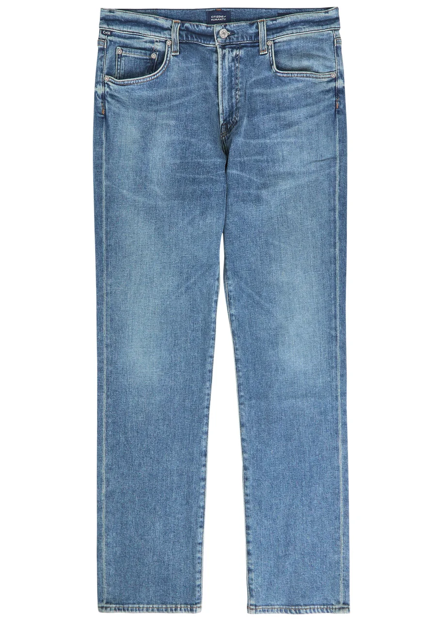 Info & Care Citizens Of Humanity denim and cashmere-blend jeans Mid-rise fit, straight-leg cut, belt loops, five pockets, designer plaque at front and back, whiskered, washed finish Partially concealed button and zip fastening at front Designer wash: Anders 93% cotton, 5.5% cashmere, 1.5% elastane Machine wash cold inside out to avoid colour transfer Size & Fit Front rise: 10.5 inches/ 26.5cm Inside leg length: 32 inches/ 81cm Midweight Model is 6'2"/ 188cm and wears a size;W32