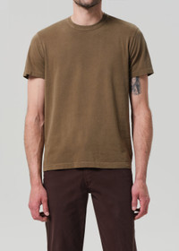 A true staple. Our Everyday Tee lives up to its name, a classic crewneck designed to be the base of any outfit. Cut from a breathable, ultra-soft organic cotton. This fit is true to size. Looks Like: Dark, brown khaki Feels Like: Lightweight super soft organic cotton DETAILS Body Length: 27 3/4" Sleeve Length: 8" Model is 6'1" and wearing a size Medium Fabric Content: 100% Organic Cotton Care Instructions: Machine wash cold inside out with like colors. Do not bleach. Tumble dry low. Made in USA with imported materials MT131-1611_DARKH