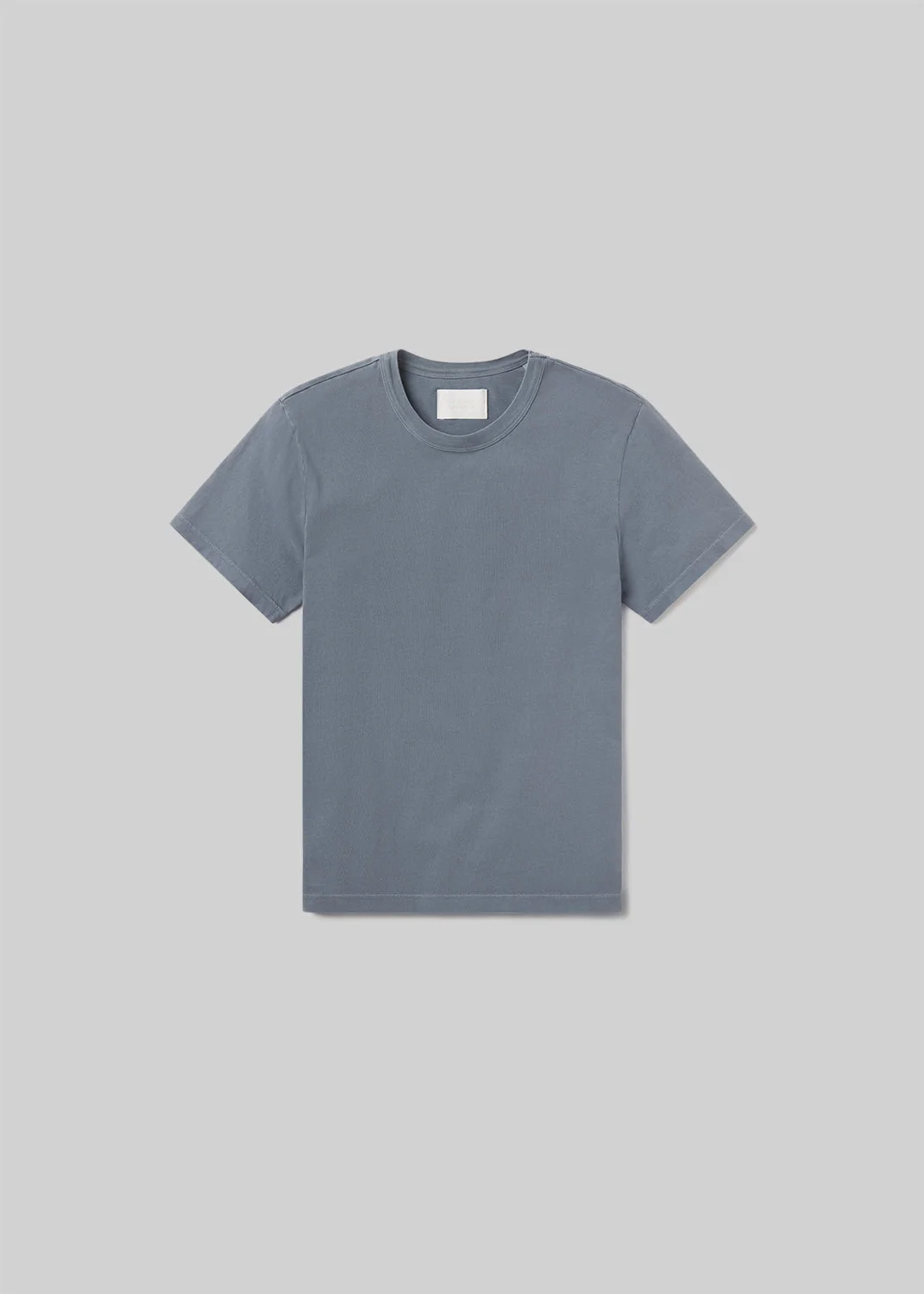 A core essential, the Everyday Tee is crafted from lightweight, ultra-soft organic cotton for a refined yet effortless feel. Designed with a classic crew neckline and a clean, structured fit, it embodies the balance of comfort and craftsmanship—a timeless staple for everyday wear. This fit is true to size. Looks Like: Medium to dark blue with grey undertone short sleeve shirt Feels Like: Lightweight super soft organic cotton From our HUMANITY Collection DETAILS Body Length: 27 3/4" Sleeve Length: 8" Model is 6'1" and wearing a size Medium Fabric Content: 100% Organic Cotton Care Instructions: Machine wash cold inside out with like colors. Do not bleach. Tumble dry low. Made in USA with imported materials MT131-1611_STNB