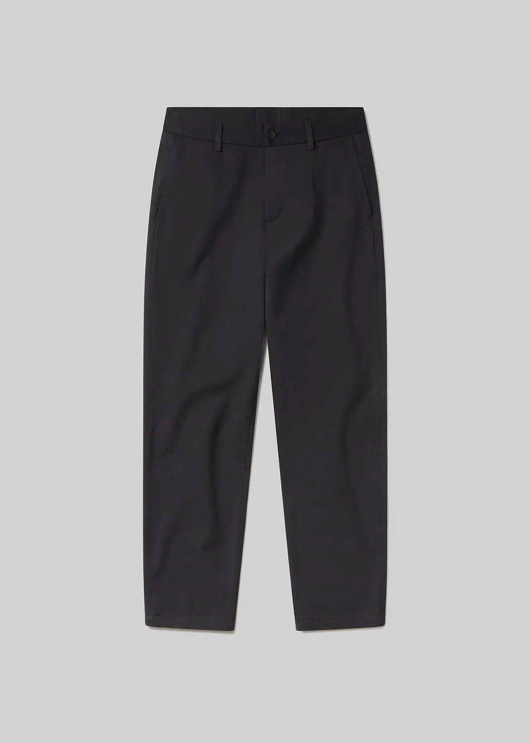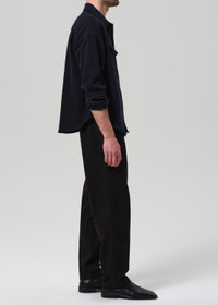 A modern take on the classic chino, this flat front trouser is cut from midweight moleskin made with regenerative cotton. The fabric offers a soft, brushed hand with clean structure. Finished in true black, it's a versatile staple with a refined edge. This fit is true to size. Looks Like: True black trouser Feels Like: Midweight, non-stretch chino with a soft hand This product is made with regenerative cotton from Citizens of Humanity Group’s Regenerative Cotton Program. Our program collaborates closely with farmers both domestically and internationally, nurturing growth, fostering education, and encouraging the widespread adoption of regenerative agricultural practices. DETAILS Closure: Zip Fly Rise: 12 3/4” Inseam: 30” Leg Opening: 16” Model is 6'1" and is wearing a size 32 Fabric Content: 55% Supima Cotton 45% Cotton Care Instructions: Machine wash cold inside out with like colors. Do not bleach. Tumble dry low. Made in USA with imported materials 7031-3055_BLK