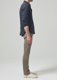 Our slim straight, relaxed through the thigh, with a gradual taper to the ankle, this is great for an athletic build. This fit is true to size. Looks Like: Khaki tonal, clean five pocket midweight twill Feels Like: High comfort, four way power stretch and recovery twill DETAILS Closure: Zip Fly Inseam: 32 1/2" Leg Opening: 14" Model is 6'1" and is wearing a Size 32 Fabric Content: 43% Viscose 33% Cotton 17% Lyocell 5% Polyester 2% Elastane Care Instructions: Machine wash cold inside out with like colors. Do not bleach. Tumble dry low. Made in USA with imported materials 6180-1364_FROTH