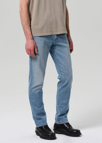 The Gage is our classic straight fit, designed with a relaxed upper block and a clean, tailored leg. Crafted from comfort stretch archive denim, it offers a soft yet substantial hand for everyday wear. Bauhaus is a light-to-medium indigo wash with subtle fading and marbling for a broken-in, vintage-inspired look. This fit is true to size. Looks Like: Light to medium indigo denim Feels Like: Comfort stretch, signature archive denim with a super soft hand for all day wearability From our HUMANITY Collection DETAILS Closure: Zip Fly Rise: 10 1/4” Inseam: 32 1/2” Leg Opening: 15” Model is 6'1" and is wearing a Size 31 Fabric Content: 99% Cotton 1% Elastane Care Instructions: Machine wash cold inside out with like colors. Do not bleach. Tumble dry low. Made in Turkey with imported materials 6180-1715_BAUHA
