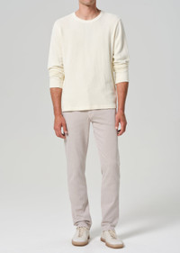 Our slim straight, relaxed through the thigh, with a gradual taper to the ankle, this is great for an athletic build. This fit is true to size. Looks Like: Clean light pale grey Feels Like: High comfort, four way power stretch and recovery twill From our HUMANITY Collection DETAILS Closure: Zip Fly Rise: 10 1/4” Inseam: 32 1/2” Leg Opening: 15” Model is 6'1" and is wearing a Size 31 Fabric Content: 43% Viscose 33% Cotton 17% Lyocell 5% Polyester 2% Elastane Care Instructions: Machine wash cold inside out with like colors. Do not bleach. Tumble dry low. Made in USA with imported materials 6180-1364-GRS