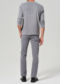 Our slim straight, relaxed through the thigh, with a gradual taper to the ankle, this is great for an athletic build. This fit is true to size. Looks Like: Clean light pale grey Feels Like: High comfort, four way power stretch and recovery twill From our HUMANITY Collection DETAILS Closure: Zip Fly Rise: 10 1/4” Inseam: 32 1/2” Leg Opening: 15” Model is 6'1" and is wearing a Size 31 Fabric Content: 43% Viscose 33% Cotton 17% Lyocell 5% Polyester 2% Elastane Care Instructions: Machine wash cold inside out with like colors. Do not bleach. Tumble dry low. Made in USA with imported materials 6180-1364_HRNGY