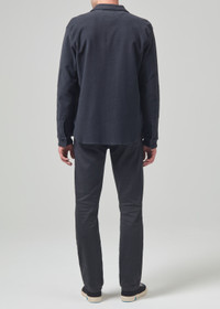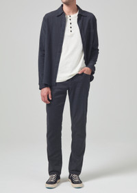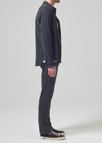 Our slim straight, relaxed through the thigh, with a gradual taper to the ankle, this is great for an athletic build. This fit is true to size. Looks Like: Faded black Feels Like: Midweight and breathable stretch linen intended for all-day comfort From our HUMANITY Collection DETAILS Closure: Zip Fly Rise: 10 1/4” Inseam: 32 1/2” Leg Opening: 15” Model is 6'1" and is wearing a Size 32 Fabric Content: 52% Cotton 46% Linen 2% Spandex Care Instructions: Machine wash cold inside out with like colors. Do not bleach. Tumble dry low. Made in USA with imported materials 6180-1623_WBLK