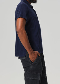 Our classic polo silhouette crafted from a slub jersey that offers an artisanal, handmade look. This fit is true to size. Looks Like: Deep navy blue Feels Like: Lightweight, breathable organic cotton From our HUMANITY Collection DETAILS Body Length: 26 3/4" Sleeve Length: 8" Model is 6'1" and wearing a size Medium Fabric Content: 100% Organic Cotton Care Instructions: Machine wash cold. Made in USA with imported materials MT129-1707_MDNG