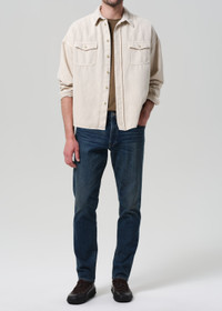 The Adler is our slim straight fit—cut with a slightly higher rise, room through the thigh, and a subtle taper from knee to ankle. This pair is crafted from heavyweight stretch denim made with regenerative cotton, offering a soft hand and lasting structure. Finished in a classic indigo wash with gentle fading and whiskering for a well-worn feel. This fit is true to size. Looks Like: Medium to dark indigo denim Feels Like: Comfort stretch, signature archive denim with a super soft hand for all day wearability From our HUMANITY Collection DETAILS Closure: Zip Fly Rise: 10 1/2” Inseam: 32 1/2” Leg Opening: 14 1/4” Model is 6'1" and is wearing a Size 32 Fabric Content: 98% Cotton 2% Elastane Care Instructions: Machine wash cold inside out with like colors. Do not bleach. Tumble dry low. Made in USA with imported materials 6190-1692_KTIC