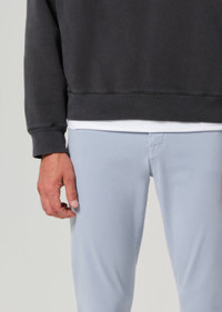 Our trimmest option, tailoring the slim to offer a trimmer look from the knee down while offering room throughout the hip and thigh. If you loved our Bowery fit, you will love the London. This fit is true to size. Looks Like: Sky blue Feels Like: Midweight and breathable stretch sateen with a smooth hand From our HUMANITY Collection DETAILS Closure: Zip Fly Rise: 10 1/4” Inseam: 32” Leg Opening: 13 1/2” Model is 6'1" and is wearing a size 32 Fabric Content: 54% Cotton 38% Tencel 7% Polyester 1% Polyurethane Care Instructions: Machine wash cold inside out with like colors. Do not bleach. Tumble dry low. Made in USA with imported materials 6170-1380_SEAGL