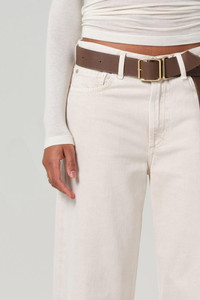 DETAILS AND INSIGHT Citizens of Humanity miro pant in almondette. 100% Cotton Hi Rise, Relaxed Leg Machine Wash Cold Made in Turkey with imported materials Style 2149B-1248-ALMDT