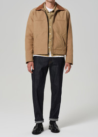 Meticulously hand-sanded and distinguished by its stylish corduroy collar and sophisticated shape, this piece features on-seam pockets for added functionality and timeless appeal. This fit is true to size. Looks Like: Medium to dark khaki Feels Like: Heavyweight durable bedford twill DETAILS Closure: Button Front Body Length: 27" Chest: 49 1/4" Sleeve Length: 25 1/4" Model is 6'1" and wearing a size Medium Fabric: 100% Cotton Care Instructions: Machine wash cold inside out with like colors. Do not bleach. Tumble dry low. Made in USA with imported materials M518-1705_HLOOM