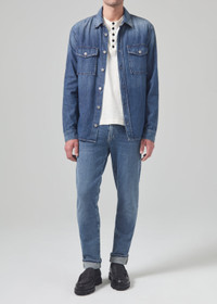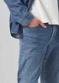 Our trimmest option, tailoring the slim to offer a trimmer look from the knee down while offering room throughout the hip and thigh. If you loved our Bowery fit, you will love the London. This fit is true to size. Looks Like: Medium indigo with slight whiskering and fading Feels Like: Soft, stretch denim with a lightweight feel From our HUMANITY Collection DETAILS Closure: Zip Fly Rise: 10 1/4” Inseam: 32” Leg Opening: 13 1/2” Model is 6'1" and is wearing a Size 32 Fabric Content: 98% Cotton 2% Spandex Care Instructions: Machine wash cold inside out with like colors. Do not bleach. Tumble dry low. Made in Turkey with imported materials 6170D-1152_PRKLN