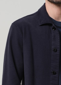 The ‘Workshirt’ is a utilitarian staple, cut from midweight French terry with stretch for ease and comfort. Featuring a structured collar, button front, and chest pocket, the long sleeve silhouette is finished in a deep navy tone—perfect for transitional layering or standalone wear. This fit is true to size. Looks Like: Dark navy long sleeve button up collared shirt Feels Like: Midweight french terry cotton made with plenty of stretch for all day comfort From our HUMANITY Collection DETAILS Body Length: 28 3/4" Chest: 44" Sleeve Length: 24" Model is 6'1" and wearing a size Medium Fabric Content: 81% Cotton 10% Rayon 7% Lyocell 2% Spandex Care Instructions: Machine wash cold inside out with like colors. Do not bleach. Tumble dry low. Made in USA with imported materials M9031-1526_NVY