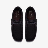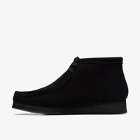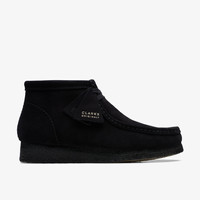 The Wallabee has become an iconic classic in our Clarks Originals collection across the globe thanks to its moccasin construction and structural silhouette. Featuring clean and simple lines, this comfortable lace-up boot in black suede is teamed with a three-quarter sock for supreme comfort and our signature crepe sole which continues to stand the test of time. - Premium black suede upper - Natural rubber pebble crepe sole - Finished with two Clarks Originals fobs Materials Upper Material: Suede Lining Material: Leather Sole Material: Crepe Midsole Material: EVA Fastening Type: Lace Sock Material: Leather