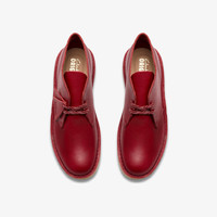 Cultural cachet and design DNA: no shoe is quite like the Clarks Originals Desert Boot. Born in the '50s, its minimal, progressive style sparked a worldwide footwear revolution – worn by beatniks, mods, Britpop bands, and Jamaican rude boys. And every design detail today remains true to that first pioneering pair. Here, the boot’s crafted, clean lines are enhanced with premium dark red leather and finished with an unfussy lace fastening. The authentic crepe sole completes this distinctive silhouette. Instantly recognizable, forever iconic. A true original. - Premium dark red leather upper - Breathable leather lining - Lace-up fastening for a secure, custom fit - Signature pebble crepe rubber outsole Materials Upper Material: Leather Lining Material: Unlined Sole Material: Crepe Fastening Type: Lace Trims: Eyelet Sock Material: Leather
