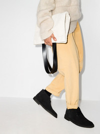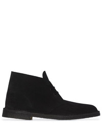 desert boots Looking to take a step in a new and stylish direction? Stride out in these black suede desert boots from Clarks Originals that keep you looking smart and thankfully comfortable too throughout the day. Say hello to your favourite 'solemate'. Featuring a round toe, stitched panels, a lace-up front fastening and a rubber sole. Imported Composition Lining: Leather 100% Outer: Suede 100% Sole: Rubber 100% SIZE & FIT Model measurements Height 6 ft 1 in(1.86 m) Bust/Chest 32.67 in(83 cm) Hips 35.03 in(89 cm) Waist 25.98 in(66 cm) FittingInformation This piece fits true to size. We recommend you get your regular size Measurement HEEL 1.18 in(3 cm) HEIGHT 4.72 in(12 cm) Sole height 0.59 in(1.5 cm)