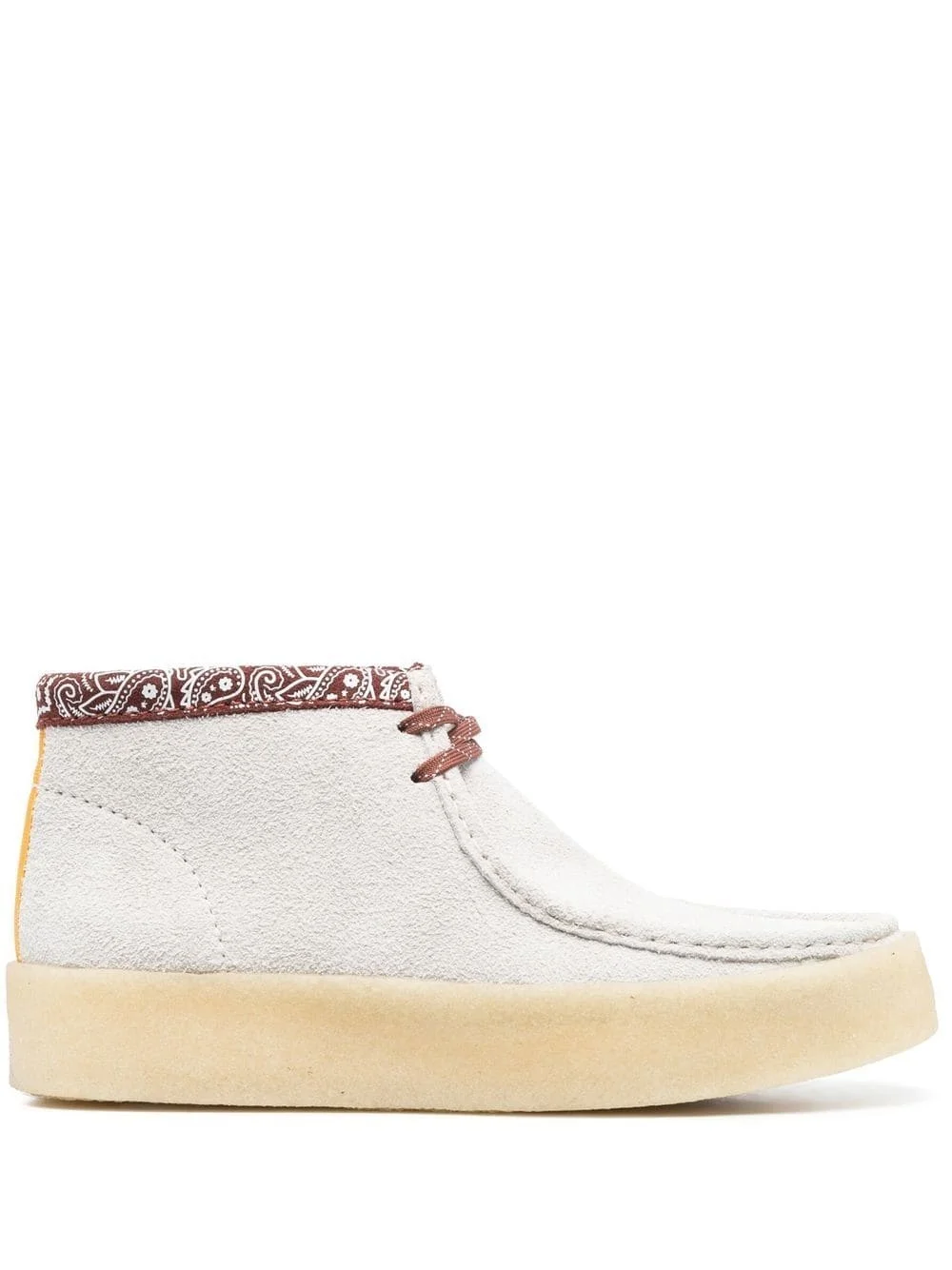 paisley-print ankle boots Highlights - White/brown - Calf suede/calf leather - Paisley print - Front lace-up fastening - Ankle-length - Round toe - Flat rubber sole - Branded insole Imported Composition Lining: Calf Leather 100%, Fabric 100% Outer: Calf Suede 100% Sole: Rubber 100% SIZE & FIT Measurement HEEL 1.57 in(4 cm) HEIGHT 3.54 in(9 cm) Sole height 1.37 in(3.5 cm)