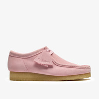 Clean, simple and timeless, our iconic Wallabee steps out in new eye-catching color-popping Light Pink suede. Constructed with suede uppers from British tannery Charles F Stead, a hand stitched apron seam, our signature natural pebble crepe sole and comes with two signature lace fobs and two sets of laces. - Moccasin construction - Steads Suede uppers - Hand stitched apron seam - Two FOBS – Clarks Originals and Wallabees - Clarks Originals heat embossed metallic logo on sock - Two laces – Flat tonal lace and additional tonal and white stripe lace - Natural pebble crepe sole Materials Upper Material: Suede Lining Material: Unlined Sole Material: Crepe Midsole Material: Crepe/EVA Fastening Type: Lace Sock Material: Leather