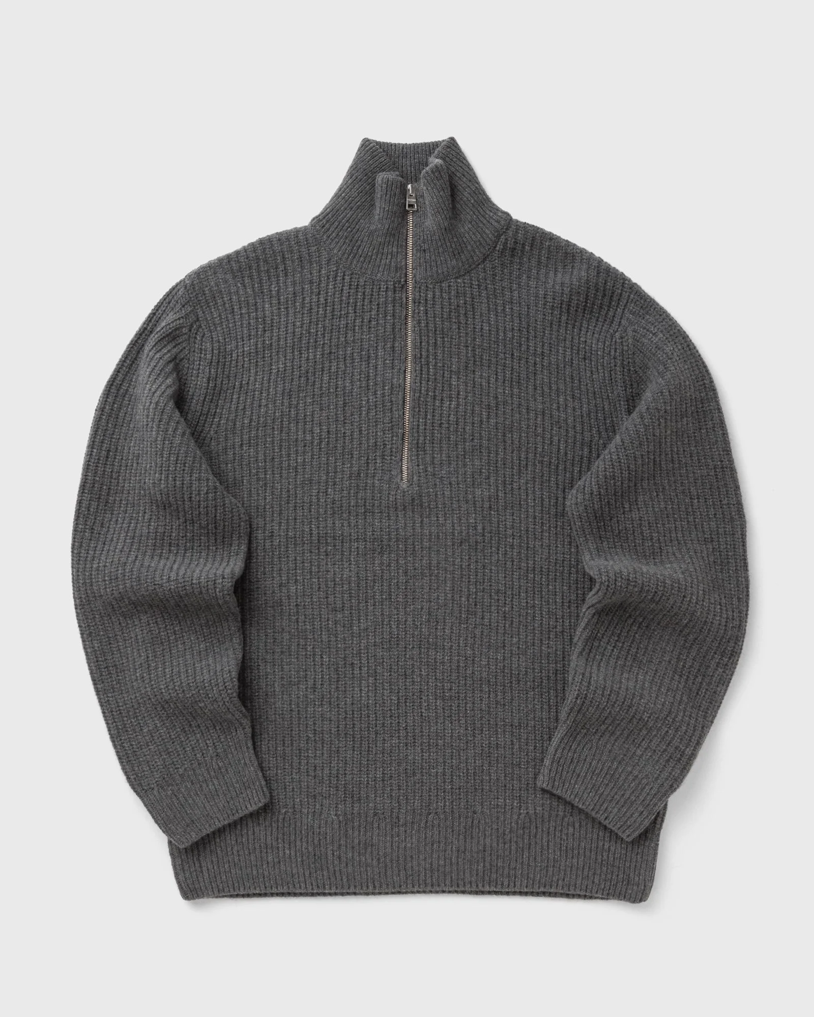 The Closed Zipped Jumper offers a regular fit and a natural texture made from soft Italian wool. The double-knit stand-up collar with half zip gives it a cozy, casual touch and allows for flexible wear. - Mixed knitting techniques create subtle visual depth - Ribbed cuffs - Double-knit stand-up collar with half zip Article number: C86205-98U-22-164 Gender: men Color: DARK GREY MELANGE Material: 100% Wool