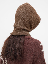 A bronze lurex-knit balaclava with a metallic sheen. Featuring: • Fitted • Lurex yarn knit construction • Metallic finish • Hood and neck coverage • Open-face design • Made in China • 100% Polyester • One size
