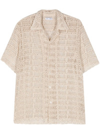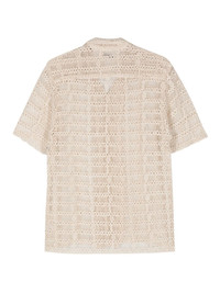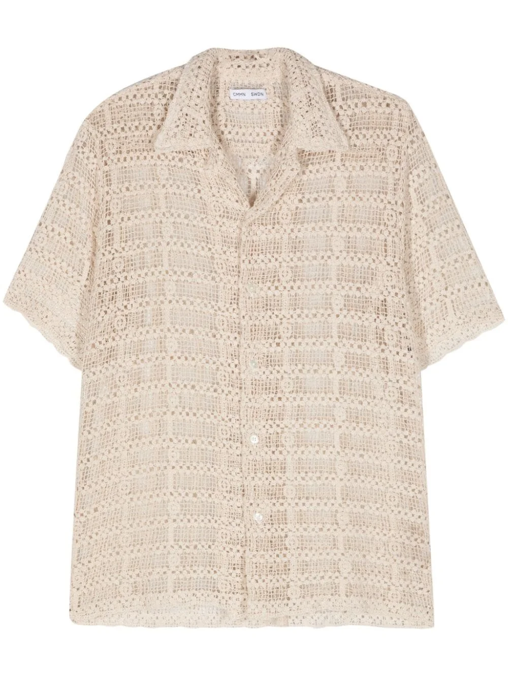 crochet-knit cotton shirt Highlights - Sand beige - Cotton - Crochet knit - Camp collar - Short sleeves - Straight hem - Front button fastening Imported Composition Cotton 100% Washing instructions Machine Wash