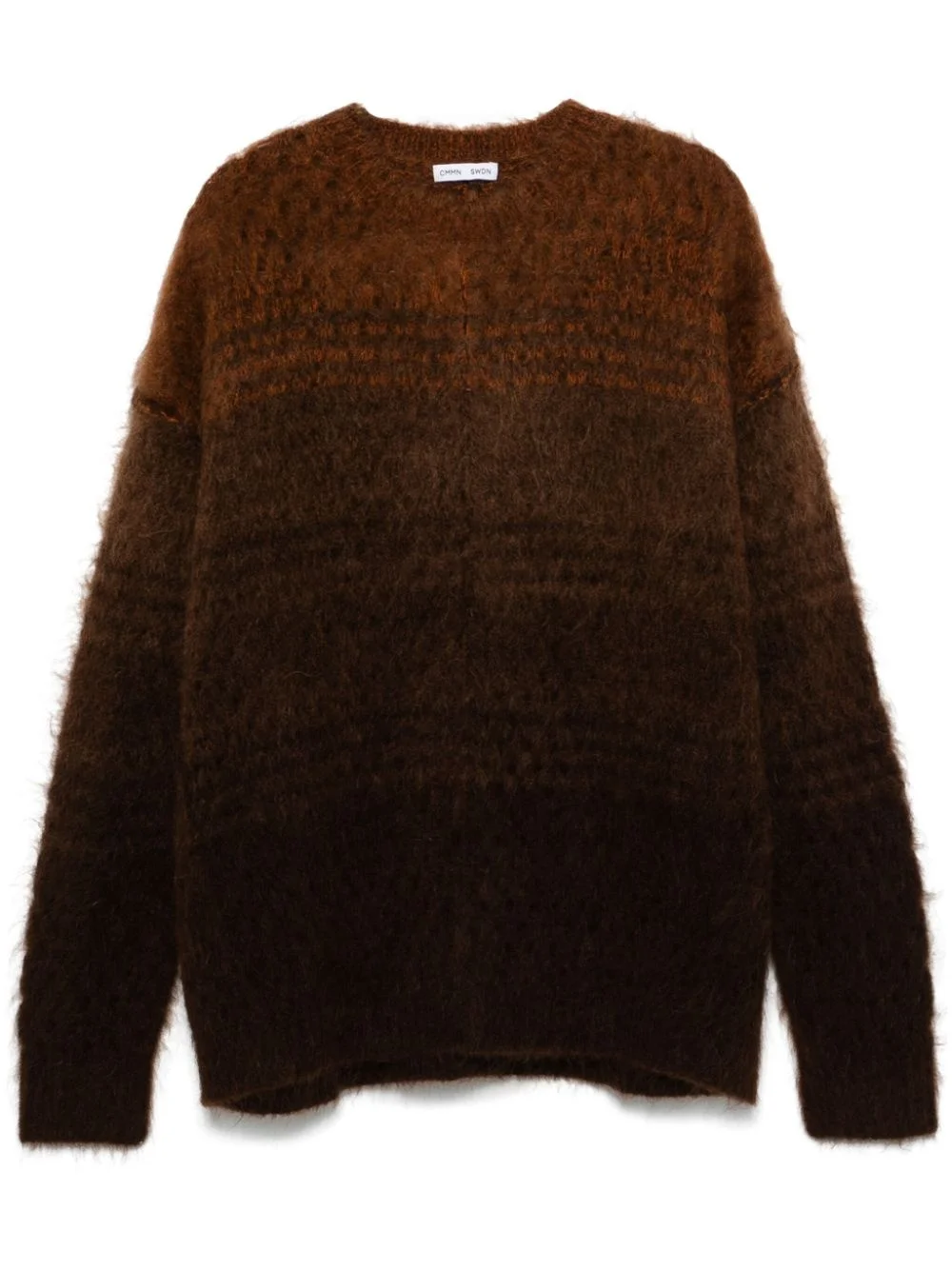 gradient-effect sweater Highlights - Caramel brown/amber orange - Open knit - Ribbed trim - Brushed effect - Gradient effect - Crew neck - Drop shoulder - Long sleeves - Unlined - Straight hem Imported Composition Mohair 33%, Wool 33%, Nylon 28%, Spandex/Elastane 6% Washing instructions Hand Wash
