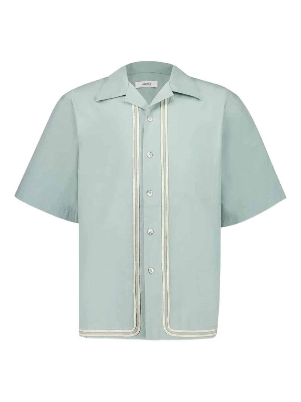 braided camp-collar shirt Highlights - Aqua blue - Front button fastening - Short sleeves - Straight hem Imported Composition Cotton 100%
