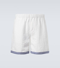 Commas is your destination for refined staples that strike a perfect balance between expert craftsmanship and modern ease. Featuring an elasticated waistband for optimal comfort, these shorts are made with a touch of linen and are complete with sophisticated rope-inspired embroidery. Product Details - Material: 65% polyester (recycled), 35% linen - Care instructions: hand wash - Made in China - Designer color name: Off White - Item color: white - Elasticated drawstring waist - Pockets: side slit pockets, back pocket - Item number: P01078443 Size & Fit - True to size - Elasticated waist - Adjustable at the waist - Non-stretchy fabric - Wide-leg - The model in the picture is 185cm-6'1" and wearing a size L - Height of model is 188cm-74" and wears a size L