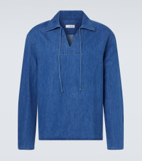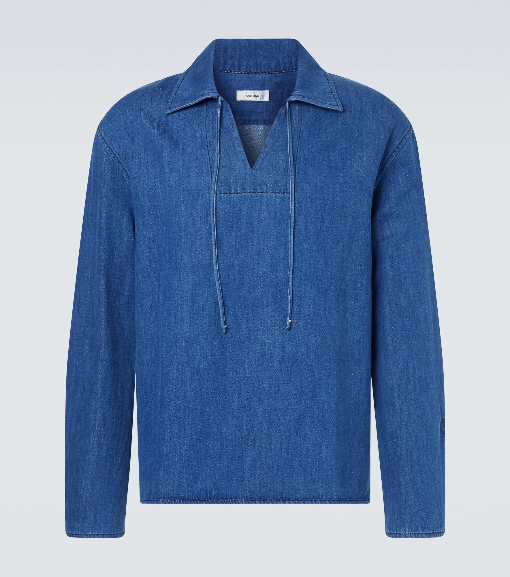 Clean lines and a muted aesthetic are the order of the day for Sydney-based resort and swimwear label Commas. This shirt is made from lightweight cotton-blend denim and finished with a self-tie V-neckline. Product Details - Material: 74% cotton, 26% hemp - Care instructions: hand wash - Made in China - Designer color name: Denim - Item color: blue - Self-tie neck - Item number: P01138106 Size & Fit - True to size - Without pleats in the back - Straight fit - Non-stretchy fabric - Falls below the hip - Height of model is 189cm-74.5" and wears a size L