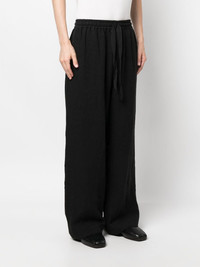 mid-rise wid-leg trousers Highlights - Black - Linen/flax - Mid-rise - Elasticated drawstring waistband - Wide leg - Two rear button-fastening jetted pockets - Two side slit pockets Imported Composition Linen/Flax 100% SIZE & FIT Model measurements Height 6 ft 2 in(1.87 m) Bust/Chest 35.82 in(91 cm) Hips 35.43 in(90 cm) Waist 27.95 in(71 cm) FittingInformation Designed with a wide leg, offering a loose and roomy fit The elasticated waist allows for a comfortable fit Made from a midweight non-stretch fabric, this piece offers minimal elasticity when worn This piece fits true to size – take your usual size