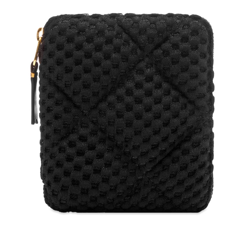 Made in Spain with a quilted textile exterior, this SA2100 wallet is from Comme des Garçons’ all-black Fat Tortoise collection. Equipped with plenty of space for your coins, cards and cash, it’s fastened with a gold-tone YKK zipper. - 100% Polyester - Leather Lining - Zip Closure - 5 Card Slots - Coin Pocket - Made in Spain