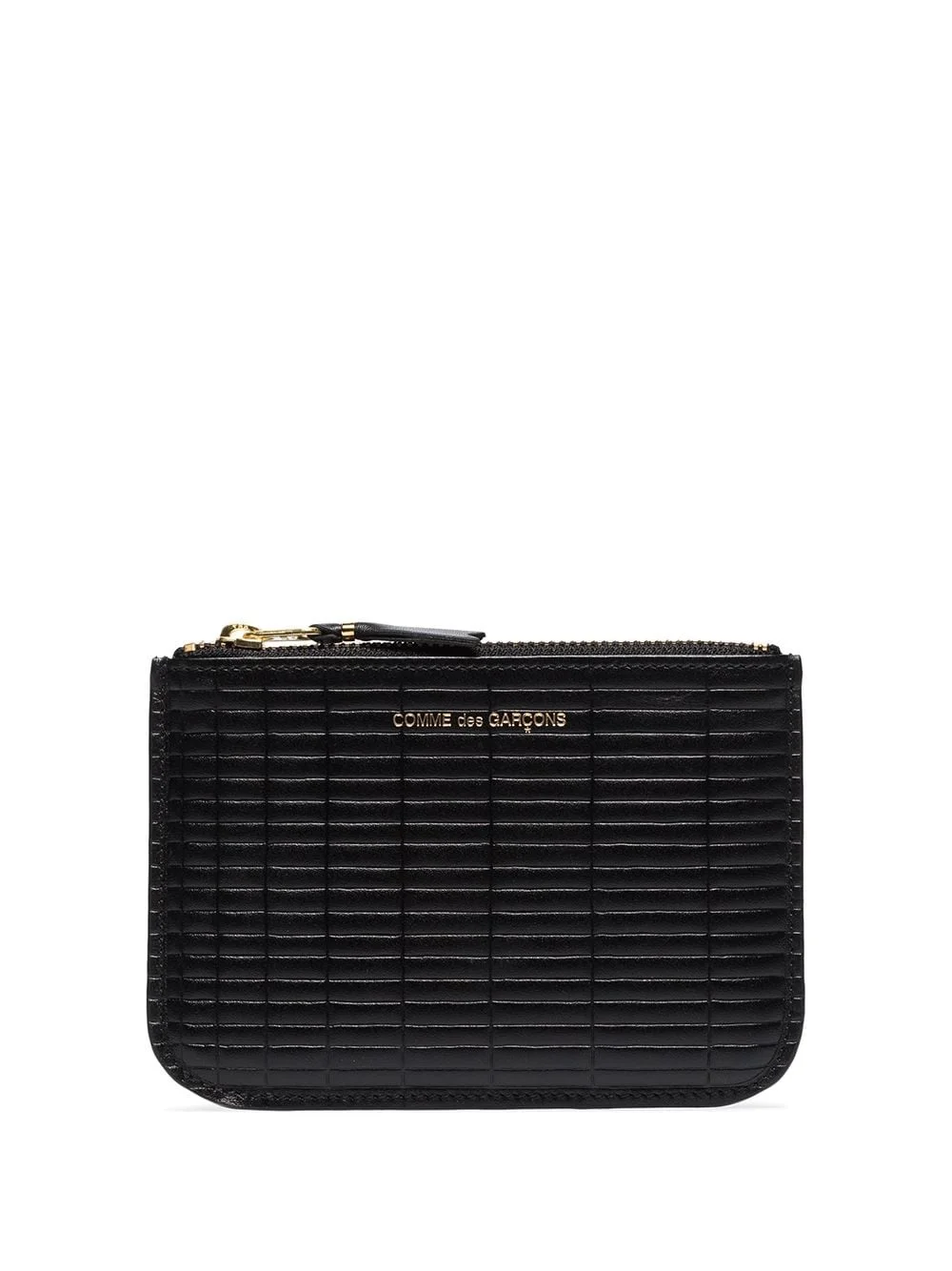 textured leather wallet Highlights - Black - Leather - Textured finish - Logo stamp to the front - Top zip fastening - Gold-tone hardware Made in Italy Composition Calf Leather 100% SIZE & FIT Measurement WIDTH 3.93 in(10 cm) LENGTH 5.9 in(15 cm)