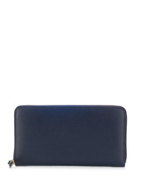 all around zip wallet Navy blue leather all around zip wallet from Comme Des Garcons Wallet featuring a smooth surface with a matte finish, multiple interior card slots and an internal zipped pocket. Imported Composition Outer: Calf Leather 100% SIZE & FIT Measurement DEPTH 0.78 in(2 cm) LENGTH 7.48 in(19 cm) WIDTH 4.72 in(12 cm)