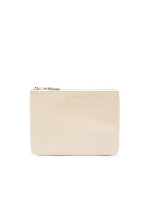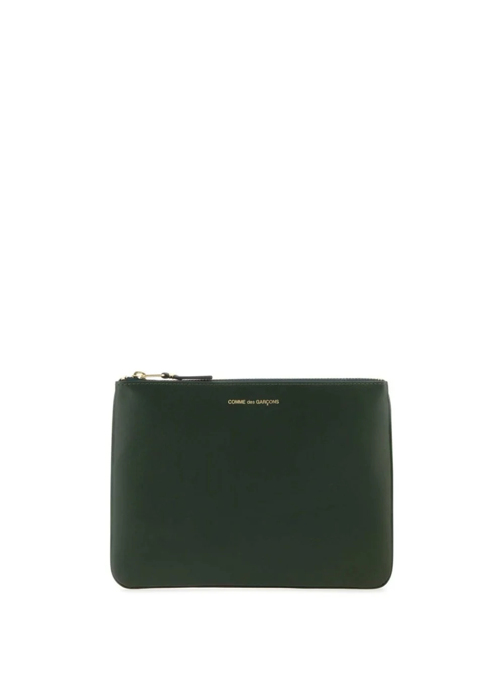 logo-print leather pouch Highlights - Green - Calf leather - Logo stamp to the front - Top zip fastening - Main compartment Imported Composition Outer: Calf Leather 100% SIZE & FIT Measurement WIDTH 6.29 in(16 cm) LENGTH 8.34 in(21.2 cm)