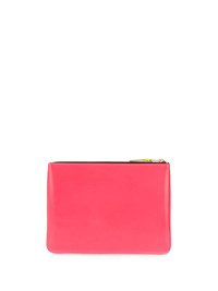 colour-block zipped wallet Orange and pink goat skin colour-block zipped wallet from Comme Des Garcons Wallet featuring a front centre logo stamp, a panelled colour block design, a top zip fastening and gold-tone hardware. Imported Composition Outer: Goat Skin 100% SIZE & FIT Measurement LENGTH 8.26 in(21 cm) WIDTH 6.29 in(16 cm)
