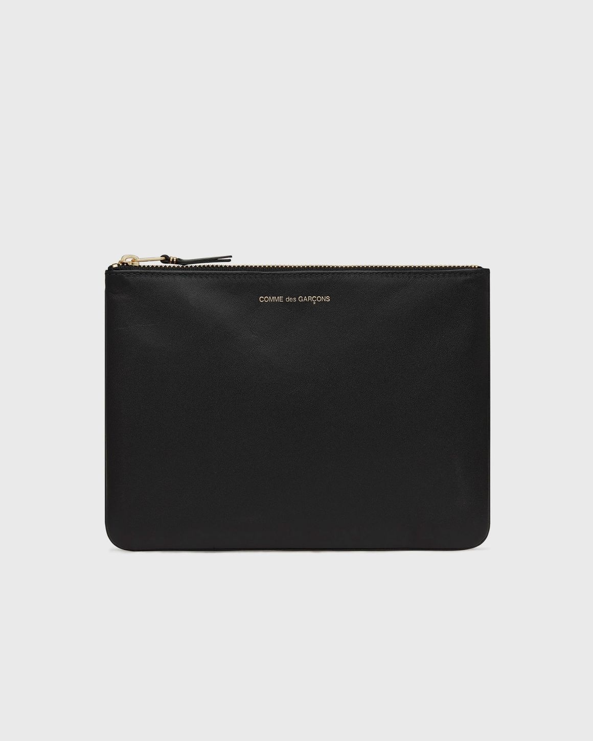 This wallet has all the details you would expect from Comme des Garcons. It is made from supple leather, embossed with a logo and features a striking gold-colored metal zipper. - Zipper - Dimensions: 21cm x 16cm Article Number: SA5100-800 Gender: Men Color: BLACK Material: 100% Leather