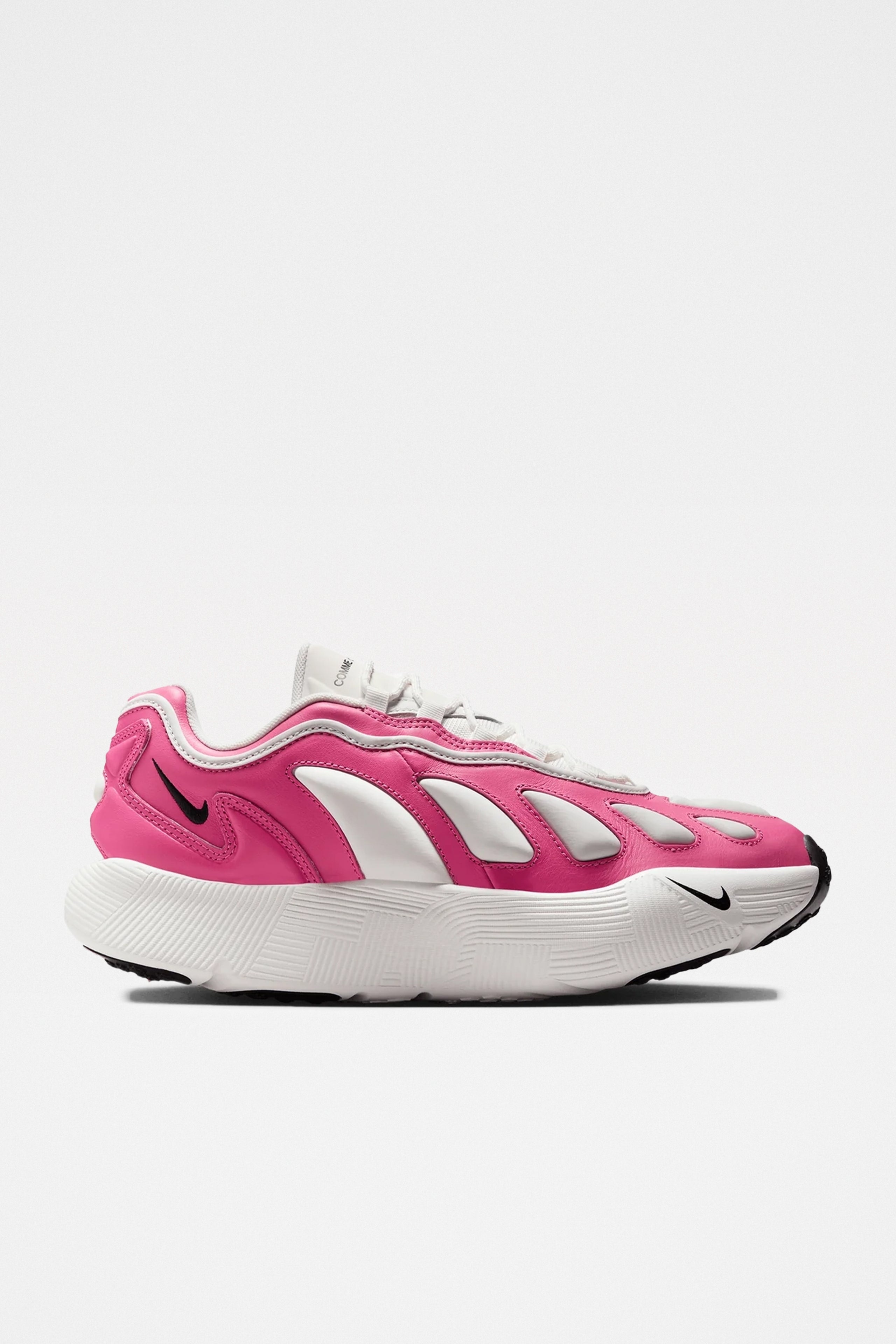 Sneakers from Comme des Garcons Homme Plus x Nike. Leather-on-leather upper with mesh detailing. Features oval laces threaded through woven lace hoops, a padded tongue with CDG Homme Plus logo and a padded heel with embroidered Nike Swoosh. Designed with debossed CDG branding on the medial midfoot shank, a chunky midsole with a rippling patchwork pattern, and an outsole marked with the Nike Swoosh logo, reinforced with harder rubber at select zones. Details Pink and white sneakers. Made in Vietnam. Leather and synthetic upper. Textile lining and insole. Rubber outsole.ART. NO: IF7038 600 Size & fit Listed in Men's US sizes. US 10 equals UK 9 / EU 44.
