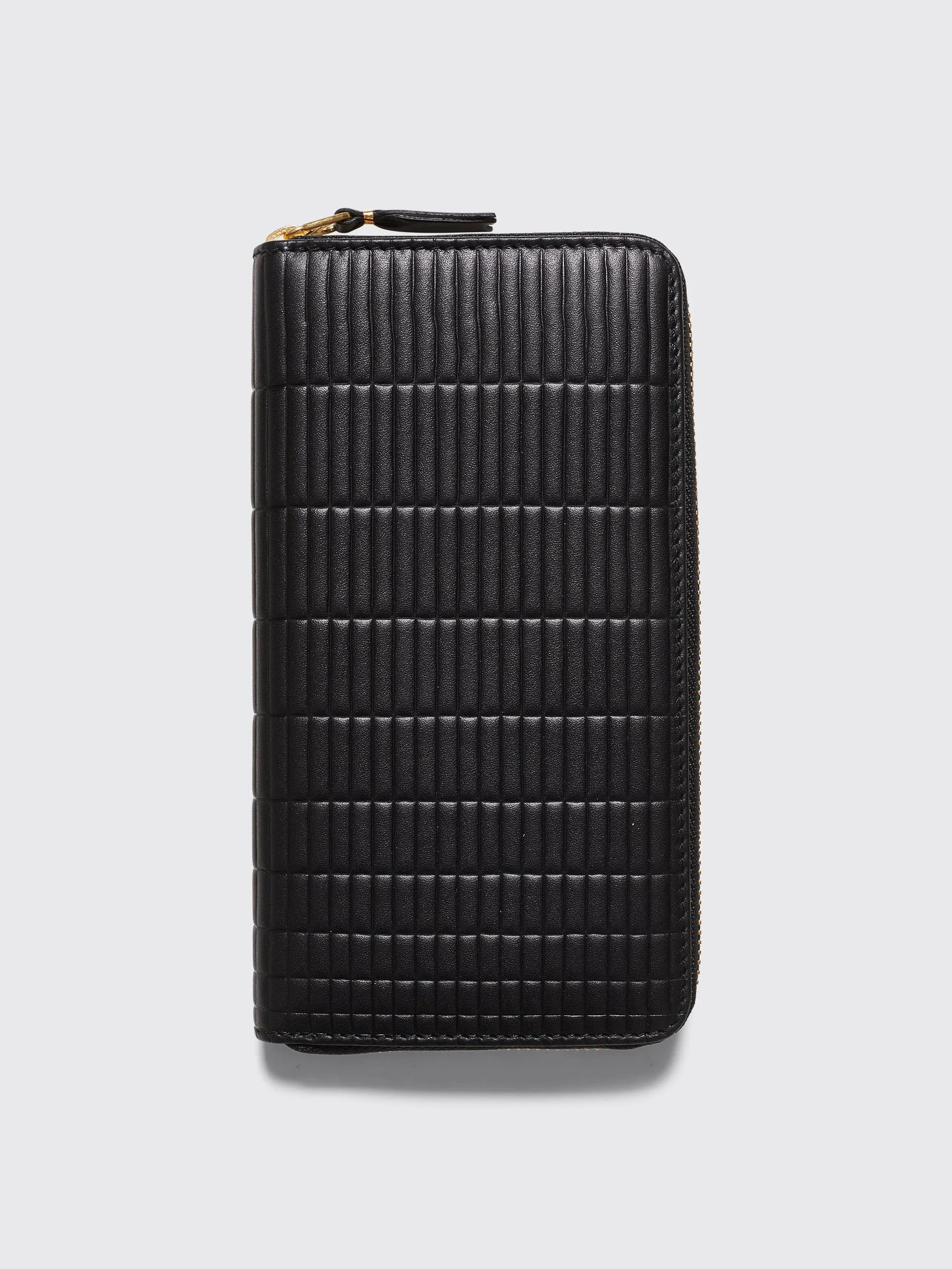 Wallet from Comme des Garcons Wallet. Made from grid embossed leather. Zip opening with textile trims on three sides. Several inner pockets and room for cards. Details Black wallet. Made in Spain from 100% leather. Art. No: SA0111BK-1 ART. NO: SA0111BK-1 Size & fit Measures 10,5 x 19,5 centimeters.