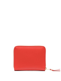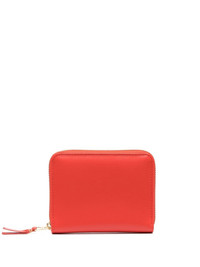 ZIP-UP LEATHER WALLET FROM COMME DES GARCONS WALLET FEATURING BRIGHT RED, CALF LEATHER, GOLD-TONE HARDWARE, ALL-AROUND ZIP FASTENING, INTERNAL CARD SLOTS AND INTERNAL LOGO STAMP.